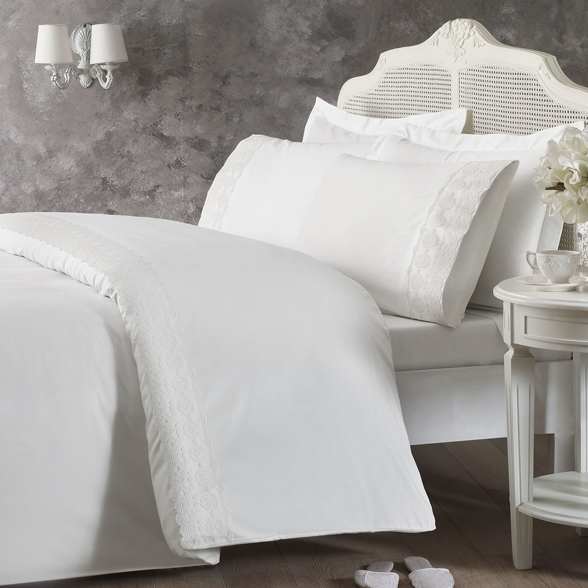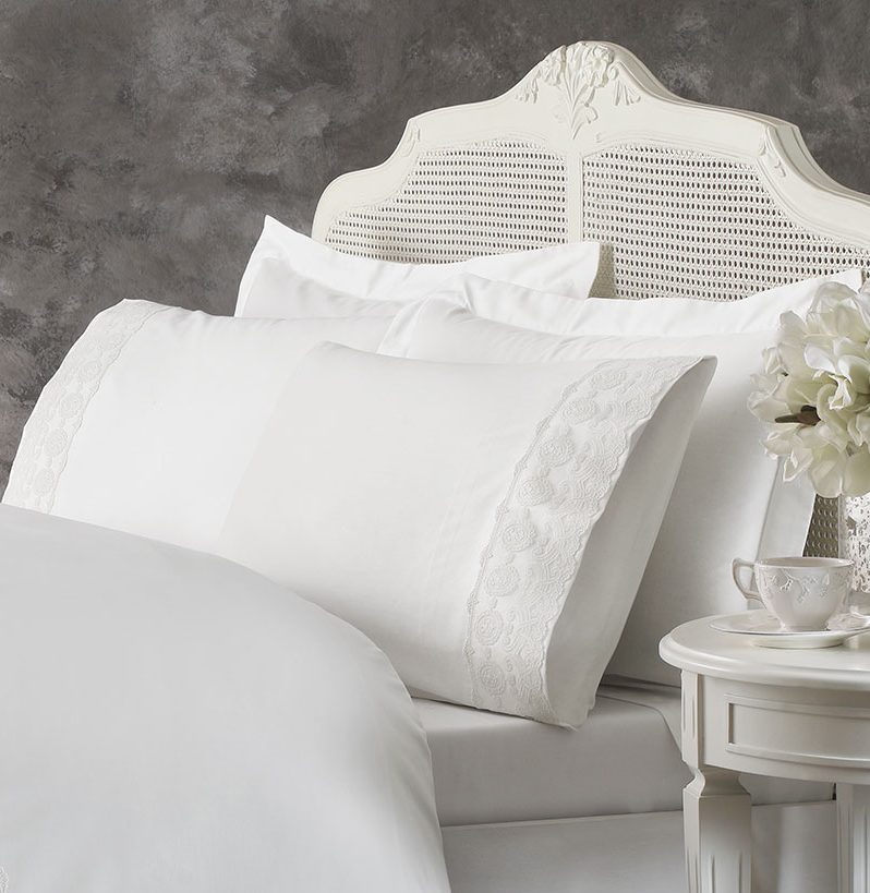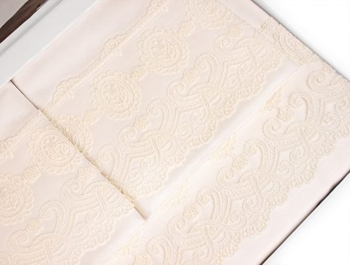 Tivolyo Home является премиальным турецким брендом широко известным на европейском рынке. Вся продукция выполнена под тщательным контролем специалистов, только из высококачественных материалов при учете всех современных тенденций в мире моды.Свадебное постельное белье турецкой фирмы TIVOLYO HOME выполнено из высококачественного сатина (100% хлопок) и декорировано изящным кружевом. Две наволочки, входящие в свадебный комплект, декорированы тонким кружевом с цветочным узором. Другие две наволочки изготовлены полностью из сатина.