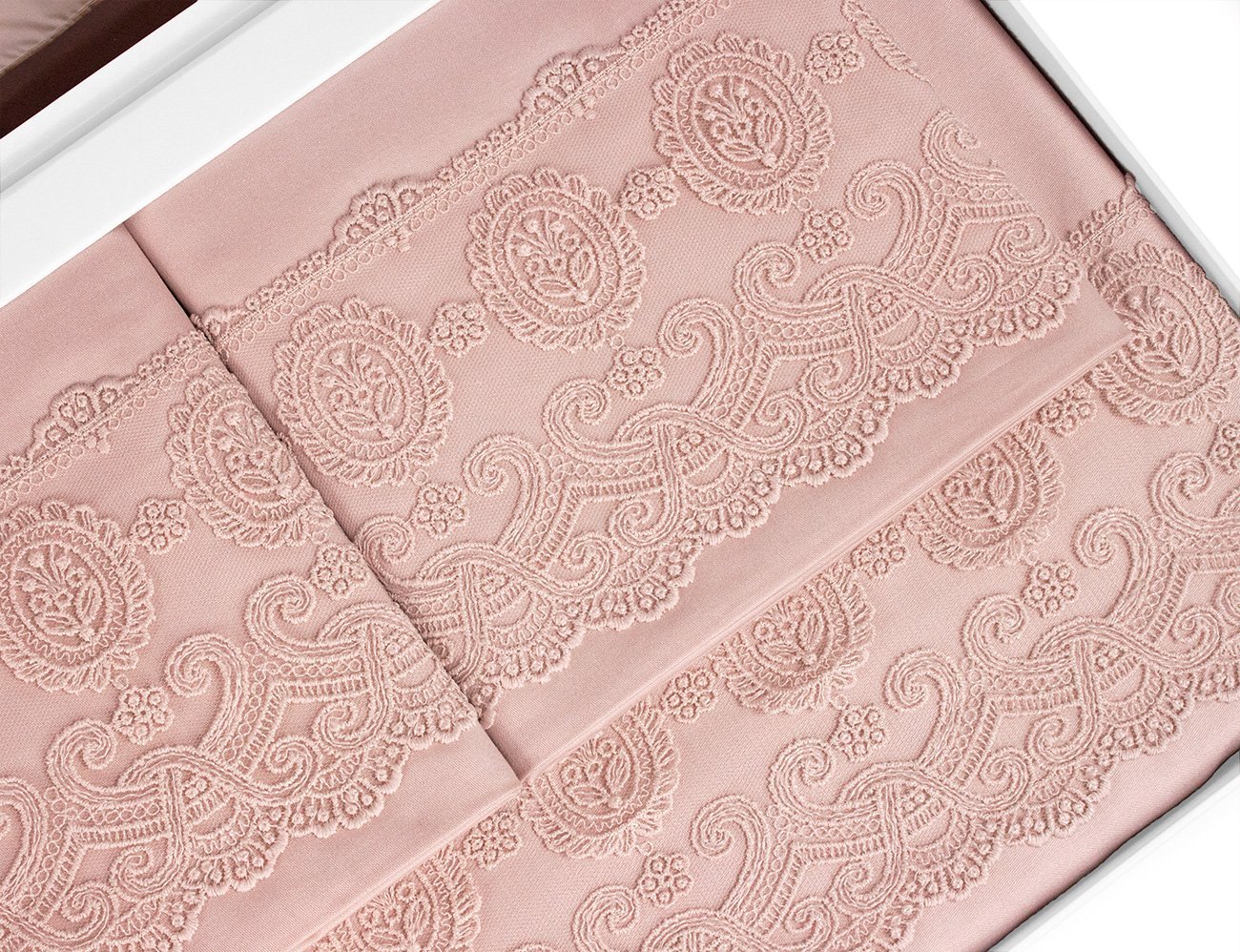 Tivolyo Home является премиальным турецким брендом широко известным на европейском рынке. Вся продукция выполнена под тщательным контролем специалистов, только из высококачественных материалов при учете всех современных тенденций в мире моды.Свадебное постельное белье турецкой фирмы TIVOLYO HOME выполнено из высококачественного сатина (100% хлопок) и декорировано изящным кружевом. Две наволочки, входящие в свадебный комплект, декорированы тонким кружевом с цветочным узором. Другие две наволочки изготовлены полностью из сатина.