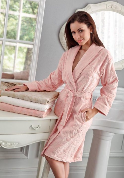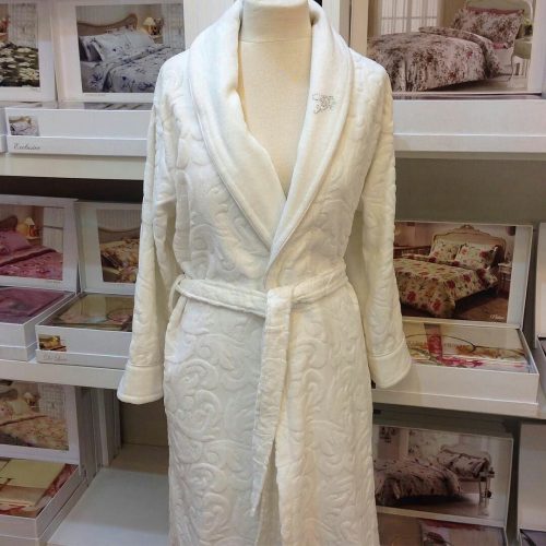 Махровый халат Tivolyo Home из чистейшего хлопка. Махровая ткань – это немного скрученные вокруг своей оси короткие, тонкие и пушистые волокна. Такая ткань достаточно прочная, отличается высокой гигроскопичностью и способна долгое время не разрушаться под воздействием света и воды.
