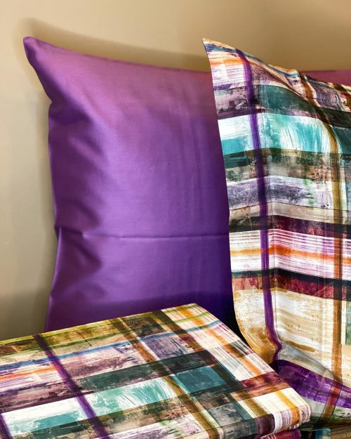 50*70 см — 2 шт с "ушками" в цвет пододеяльника; 70*70 см — 2 шт без "ушек" в тон простыни