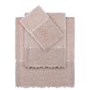 Набор от турецкого бренда премиум класса Tivolyo Home состоит из трех предметов: полотенце-салфетка, лицевое и банное полотенце.