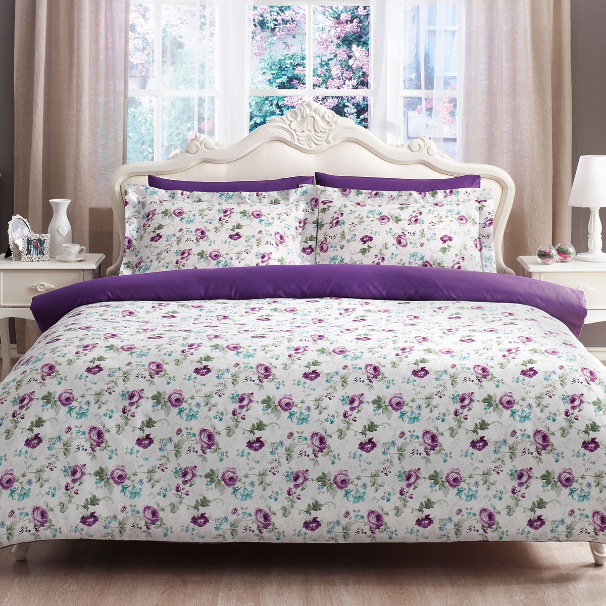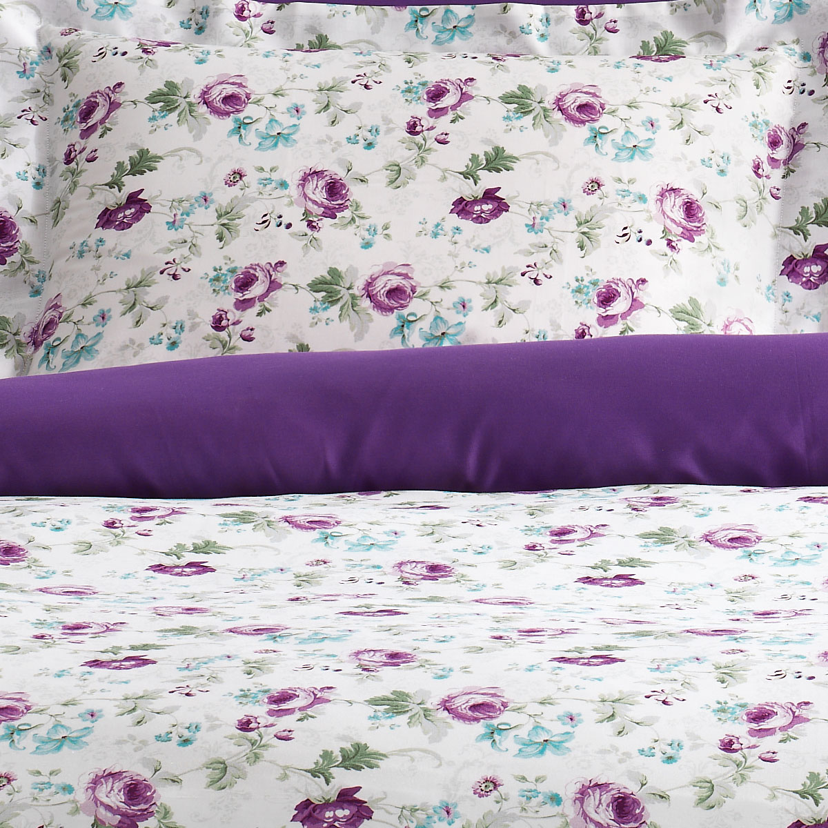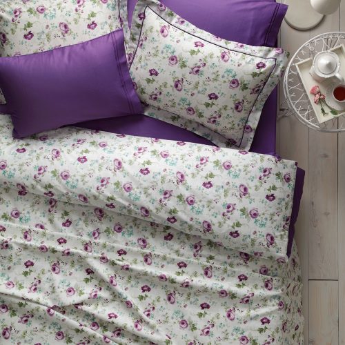 Пододеяльник 200*220 см — 1 шт, Простыня 240*260 см — 1 шт Наволочки 50*70 см — 4 шт, две с "ушками" в цвет пододеяльника, две другие без "ушек" в тон простыни