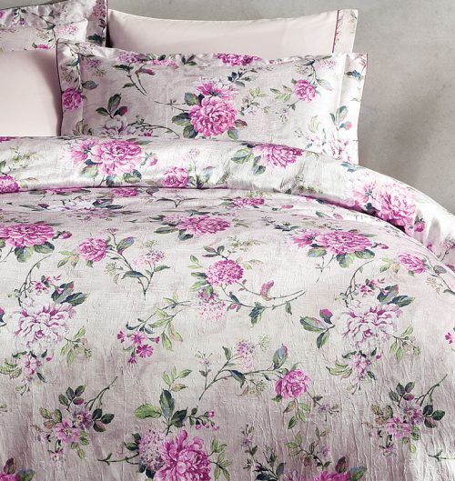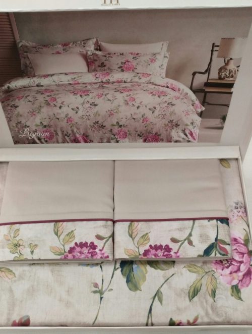Tivolyo Home является премиальным турецким брендом широко известным на европейском рынке. Вся продукция выполнена под тщательным контролем специалистов, только из высококачественных материалов при учете всех современных тенденций в мире моды. В коллекции сатин-жатый шелк в основном используется цветочный орнамент в сочетании с однотонной простыней идеально подобранной в цвет. Внутрення сторона пододеяльника, простыня и две наволочки из сатина, а лицевая сторона пододеяльника и две другие наволочки — из жатого шелка. Изделия бережно сложены в подарочную упаковку с логотипом фирмы.