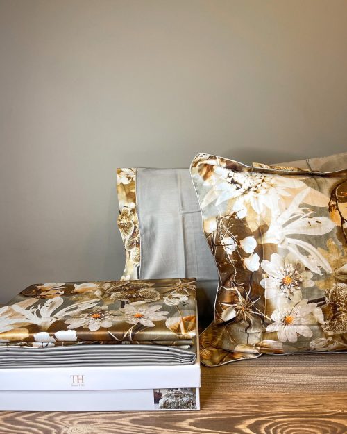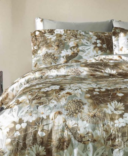 Tivolyo Home является премиальным турецким брендом широко известным на европейском рынке. Вся продукция выполнена под тщательным контролем специалистов, только из высококачественных материалов при учете всех современных тенденций в мире моды. В коллекции сатин-жатый шелк в основном используется цветочный орнамент в сочетании с однотонной простыней идеально подобранной в цвет. Внутрення сторона пододеяльника, простыня и две наволочки из сатина, а лицевая сторона пододеяльника и две другие наволочки — из жатого шелка. Изделия бережно сложены в подарочную упаковку с логотипом фирмы.