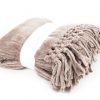 Дизайн однотонный, с двух сторон плед украшен декоративными кистями. Упаковка — прозрачная сумка ПВХ на молнии.