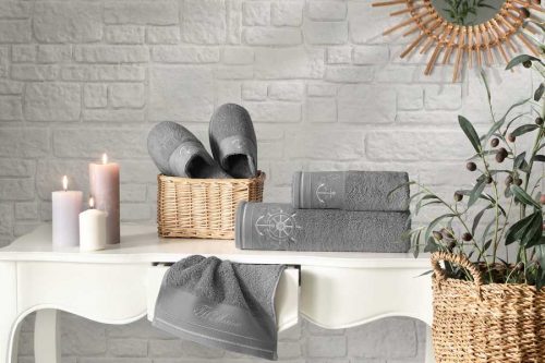 Tivolyo Home NAVY набор полотенец — 3 шт И ТАПОЧКИ СЕРЫЙ