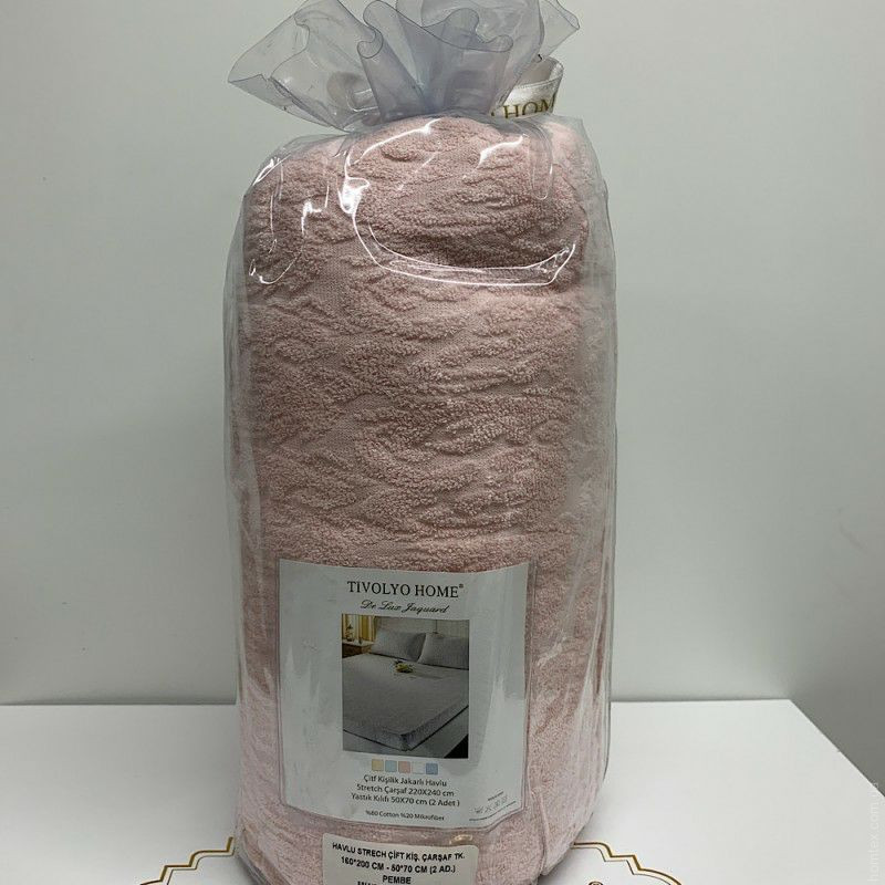 Набор из высококачественного хлопка от турецкого бренда премиум класса Tivolyo Home. Набор состоит из махровой простыни с жаккардовым рисунком на резинке и двух наволочек 50*70 см.