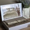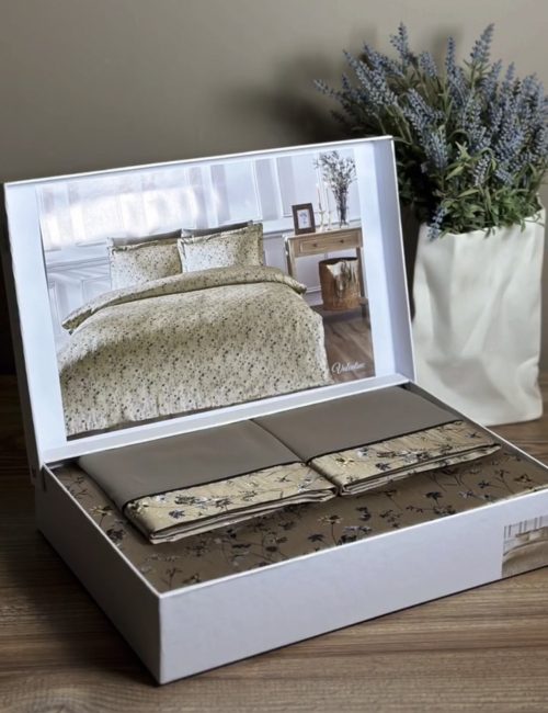 Tivolyo Home является премиальным турецким брендом широко известным на европейском рынке. Вся продукция выполнена под тщательным контролем специалистов, только из высококачественных материалов при учете всех современных тенденций в мире моды. В коллекции сатин-жатый шелк в основном используется цветочный орнамент в сочетании с однотонной простыней идеально подобранной в цвет. Внутрення сторона пододеяльника, простыня и две наволочки из сатина, а лицевая сторона пододеяльника и две другие наволочки — из жатого шелка. Изделия бережно сложены в подарочную упаковку с логотипом фирмы.