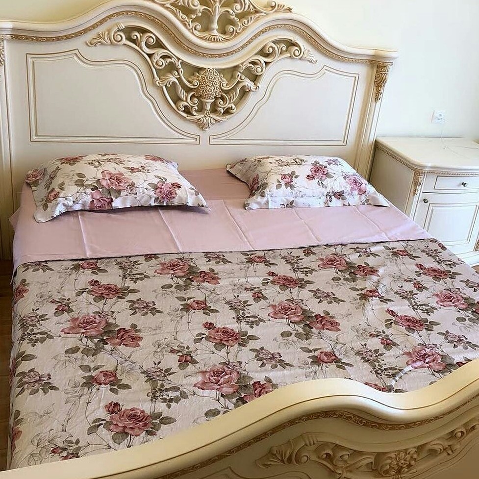 Tivolyo Home является премиальным турецким брендом широко известным на европейском рынке. Вся продукция выполнена под тщательным контролем специалистов, только из высококачественных материалов при учете всех современных тенденций в мире моды. В коллекции сатин-жатый шелк в основном используется цветочный орнамент в сочетании с однотонной простыней идеально подобранной в цвет. Внутрення сторона пододеяльника, простыня и две наволочки из сатина, а лицевая сторона пододеяльника и две другие наволочки — из жатого шелка. Изделия бережно сложены в подарочную упаковку с логотипом фирмы.